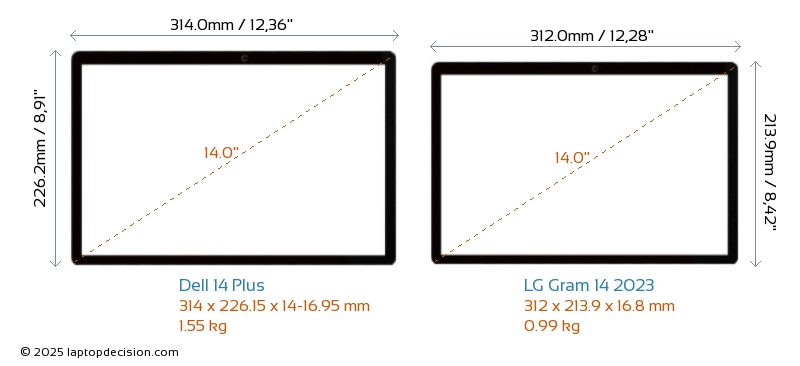 HDMIBoth 14 Plus and Gram 14 2023 feature an HDMI port. 14 Plus offers 1x HDMI 2.1, while Gram 14 2023 offers 1x HDMI 2.0.