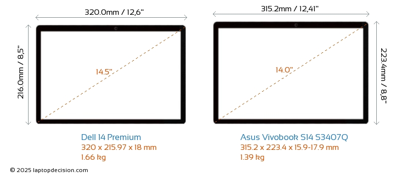 Thunderbolt 14 Premium is equipped with Thunderbolt 4 port. Vivobook S14 S3407Q does not have Thunderbolt port.