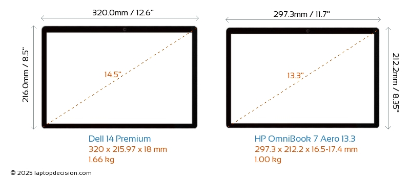 HDMI OmniBook 7 Aero 13.3 features an HDMI port (1x HDMI 2.1) for connecting to external monitors. 14 Premium does not have an HDMI port.