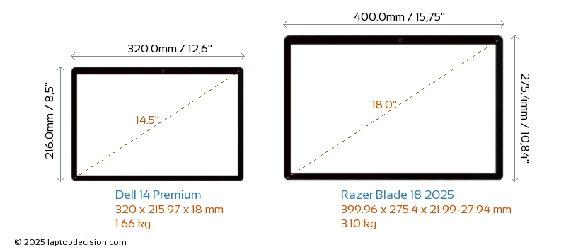 USB Blade 18 2025 is equipped with 3x USB 3.2 USB-A ports. 14 Premium does not have USB-A ports.Both 14 Premium and Blade 18 2025 have USB Type-C ports. 14 Premium has 3x USB 4.0 USB Type-C ports, while Blade 18 2025 has 2x USB 4.0 USB Type-C ports.