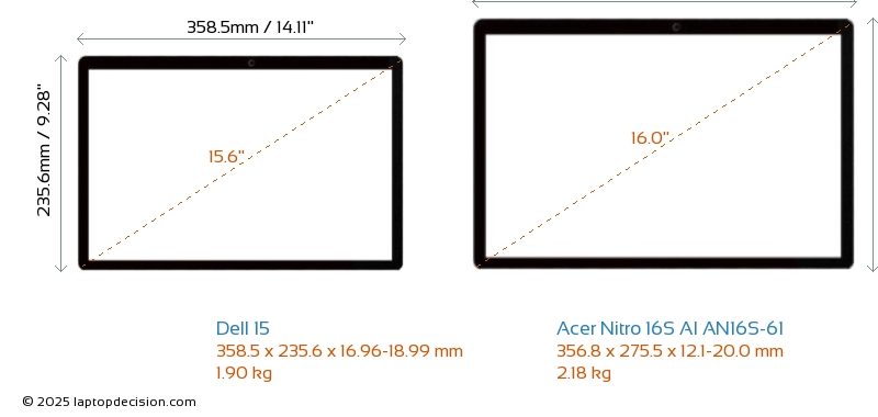 HDMIBoth 15 and Nitro 16S AI AN16S-61 feature an HDMI port. 15 offers 1x HDMI 1.4, while Nitro 16S AI AN16S-61 offers 1x HDMI 2.1.