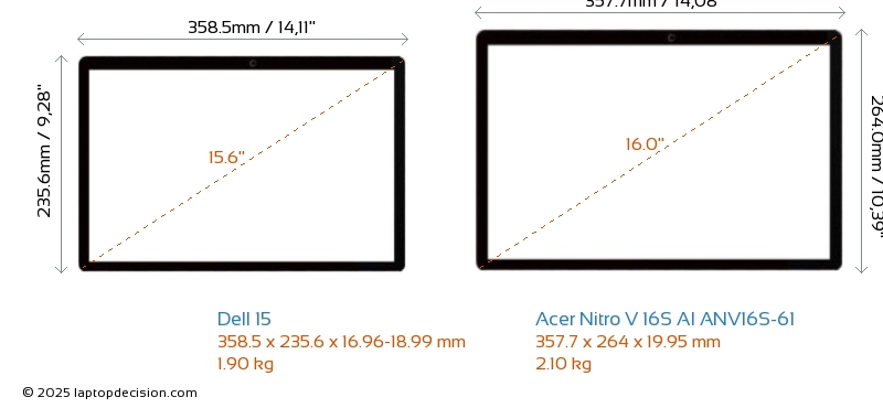 HDMIBoth 15 and Nitro V 16S AI ANV16S-61 feature an HDMI port. 15 offers 1x HDMI 1.4, while Nitro V 16S AI ANV16S-61 offers 1x HDMI 2.1.