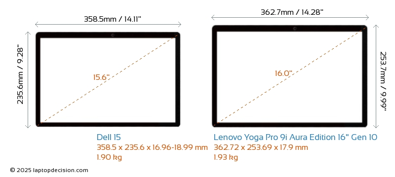 USBBoth 15 and Yoga Pro 9i Aura Edition 16" Gen 10 feature 2x USB 3.2 USB-A ports.Both 15 and Yoga Pro 9i Aura Edition 16" Gen 10 have USB Type-C ports. 15 has 1x USB 3.2 USB Type-C ports, while Yoga Pro 9i Aura Edition 16" Gen 10 has 2x USB 3.2 USB Type-C ports.