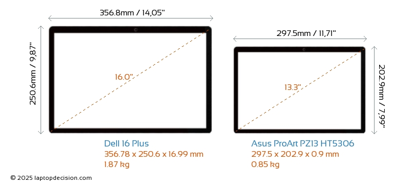 USB 16 Plus is equipped with 1x USB 3.2 USB-A ports. ProArt PZ13 HT5306 does not have USB-A ports.Both 16 Plus and ProArt PZ13 HT5306 feature 2x USB 4.0 USB Type-C ports.