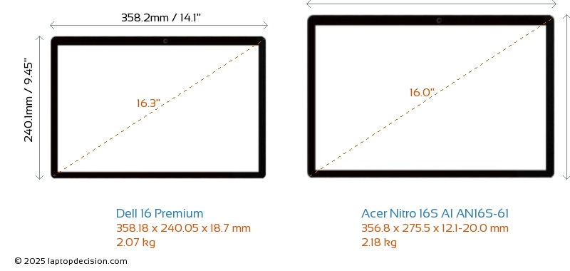 HDMI Nitro 16S AI AN16S-61 features an HDMI port (1x HDMI 2.1) for connecting to external monitors. 16 Premium does not have an HDMI port.