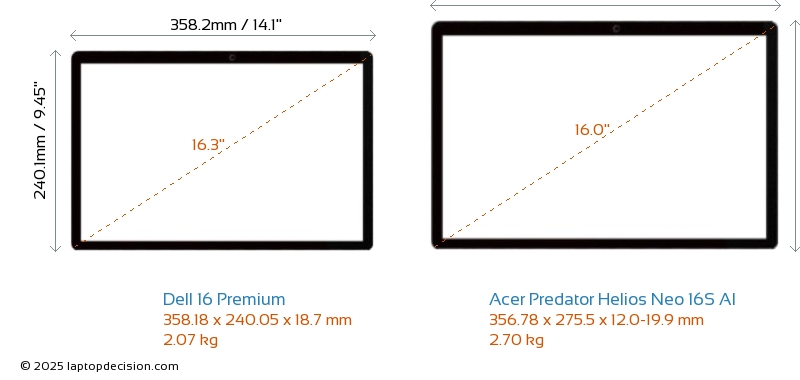 HDMI Predator Helios Neo 16S AI features an HDMI port (1x HDMI 2.1) for connecting to external monitors. 16 Premium does not have an HDMI port.