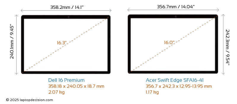 HDMI Swift Edge SFA16-41 features an HDMI port (1x HDMI 2.1) for connecting to external monitors. 16 Premium does not have an HDMI port.