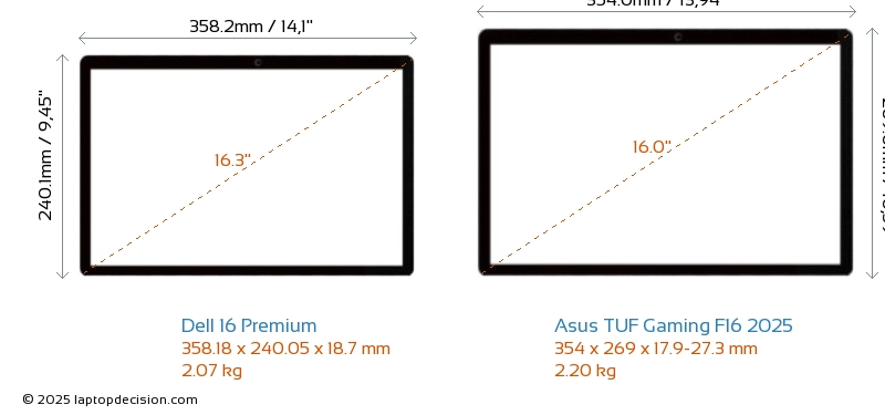 HDMI TUF Gaming F16 2025 features an HDMI port (1x HDMI 2.1) for connecting to external monitors. 16 Premium does not have an HDMI port.
