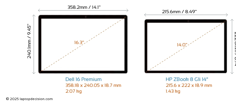 HDMI ZBook 8 G1i 14" features an HDMI port (1x HDMI 2.1) for connecting to external monitors. 16 Premium does not have an HDMI port.