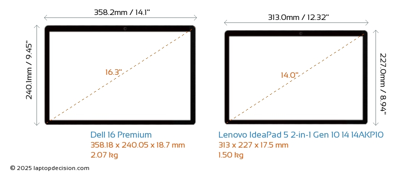 USB IdeaPad 5 2-in-1 Gen 10 14 14AKP10 is equipped with 2x USB 3.2 USB-A ports. 16 Premium does not have USB-A ports.Both 16 Premium and IdeaPad 5 2-in-1 Gen 10 14 14AKP10 have USB Type-C ports. 16 Premium has 3x USB 4.0 USB Type-C ports, while IdeaPad 5 2-in-1 Gen 10 14 14AKP10 has 2x USB 4.0 USB Type-C ports.