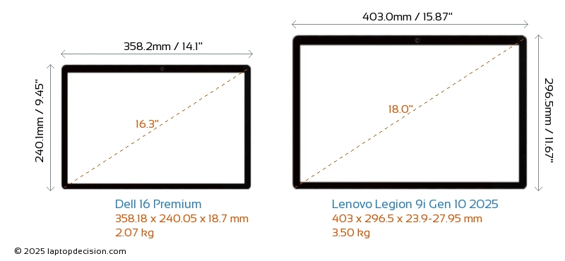 HDMI Legion 9i Gen 10 2025 features an HDMI port (1x HDMI 2.1) for connecting to external monitors. 16 Premium does not have an HDMI port.