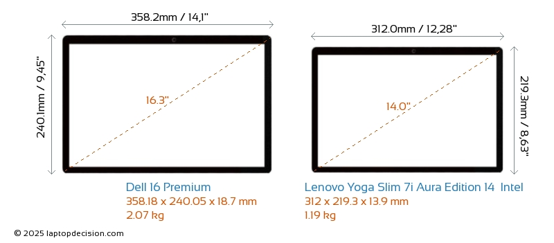 HDMI Yoga Slim 7i Aura Edition 14 Intel features an HDMI port (1x HDMI 2.1) for connecting to external monitors. 16 Premium does not have an HDMI port.
