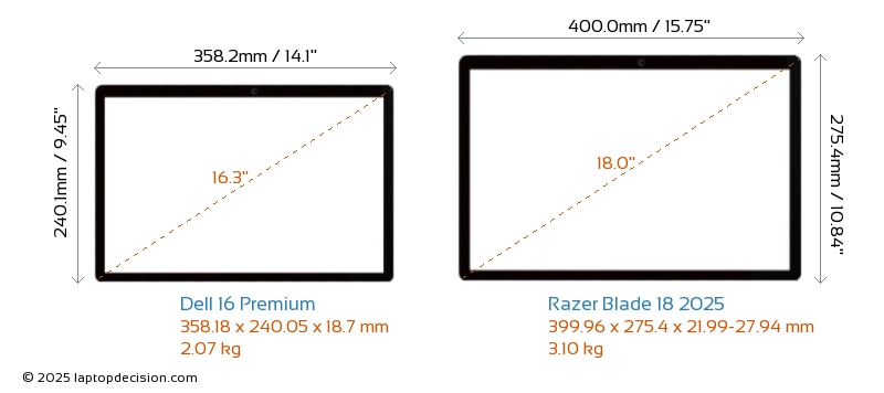 USB Blade 18 2025 is equipped with 3x USB 3.2 USB-A ports. 16 Premium does not have USB-A ports.Both 16 Premium and Blade 18 2025 have USB Type-C ports. 16 Premium has 3x USB 4.0 USB Type-C ports, while Blade 18 2025 has 2x USB 4.0 USB Type-C ports.