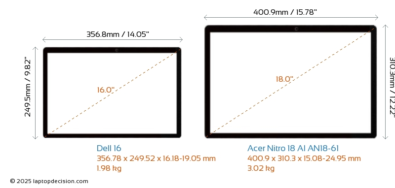 HDMIBoth 16 and Nitro 18 AI AN18-61 feature an HDMI port. 16 offers 1x HDMI 1.4, while Nitro 18 AI AN18-61 offers 1x HDMI 2.1.