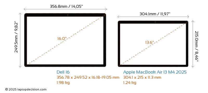 USB 16 is equipped with 2x USB 3.2 USB-A ports. MacBook Air 13 M4 2025 does not have USB-A ports.Both 16 and MacBook Air 13 M4 2025 have USB Type-C ports. 16 has 1x USB 3.2 USB Type-C ports, while MacBook Air 13 M4 2025 has 2x USB 4.0 USB Type-C ports.