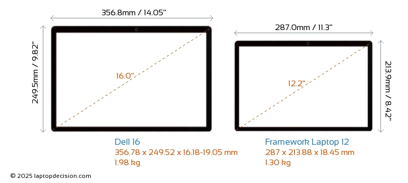 USBBoth 16 and Laptop 12 have USB-A ports. 16 has 2x USB 3.2 USB-A ports, while Laptop 12 has 4x USB 3.2 USB-A ports.Both 16 and Laptop 12 have USB Type-C ports. 16 has 1x USB 3.2 USB Type-C ports, while Laptop 12 has 4x USB 4.0 USB Type-C ports.