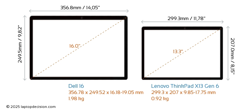 HDMIBoth 16 and ThinkPad X13 Gen 6 feature an HDMI port. 16 offers 1x HDMI 1.4, while ThinkPad X13 Gen 6 offers 1x HDMI 2.1.
