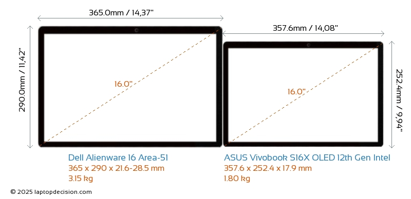 HDMIBoth Alienware 16 Area-51 and Vivobook S16X OLED 12th Gen Intel feature an HDMI port. Alienware 16 Area-51 offers 1x HDMI 2.1, while Vivobook S16X OLED 12th Gen Intel offers 1x HDMI 2.0.