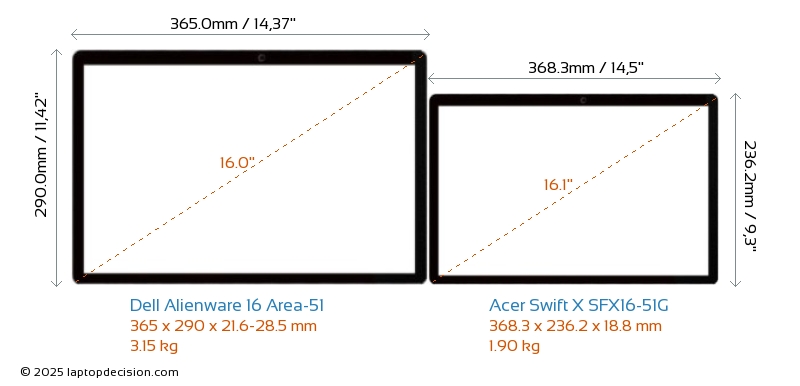 HDMIBoth Alienware 16 Area-51 and Swift X SFX16-51G feature an HDMI port. Alienware 16 Area-51 offers 1x HDMI 2.1, while Swift X SFX16-51G offers 1x HDMI 2.0.