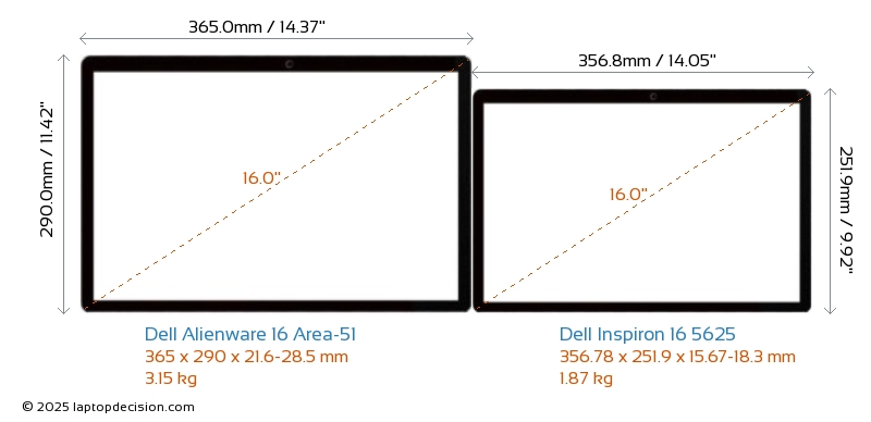 HDMIBoth Alienware 16 Area-51 and Inspiron 16 5625 feature an HDMI port. Alienware 16 Area-51 offers 1x HDMI 2.1, while Inspiron 16 5625 offers 1x HDMI 1.4.