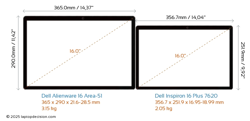 HDMIBoth Alienware 16 Area-51 and Inspiron 16 Plus 7620 feature an HDMI port. Alienware 16 Area-51 offers 1x HDMI 2.1, while Inspiron 16 Plus 7620 offers 1x HDMI 2.0.