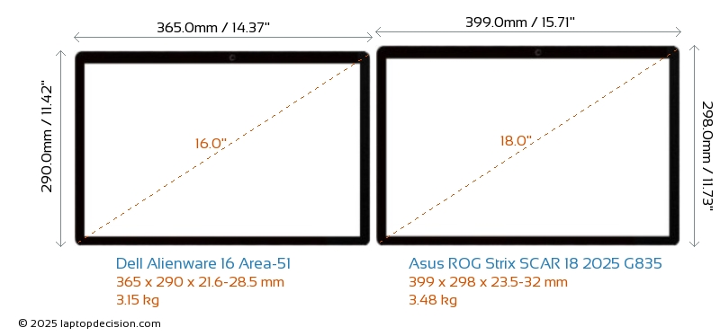 SD Card Reader Alienware 16 Area-51 is equipped with an SD Card Reader for easy access to memory cards. ROG Strix SCAR 18 2025 G835 does not have an SD Card Reader.