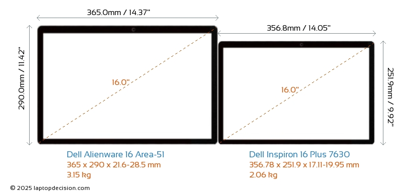 HDMIBoth Alienware 16 Area-51 and Inspiron 16 Plus 7630 feature an HDMI port. Alienware 16 Area-51 offers 1x HDMI 2.1, while Inspiron 16 Plus 7630 offers 1x HDMI 2.0.