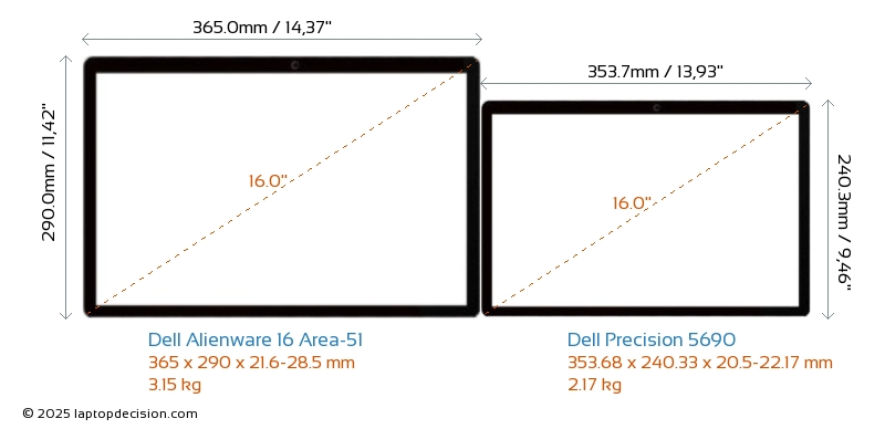 USB Alienware 16 Area-51 is equipped with 3x USB 3.2 USB-A ports. Precision 5690 does not have USB-A ports.Both Alienware 16 Area-51 and Precision 5690 have USB Type-C ports. Alienware 16 Area-51 has 2x USB 4.0 USB Type-C ports, while Precision 5690 has 3x USB 4.0 USB Type-C ports.