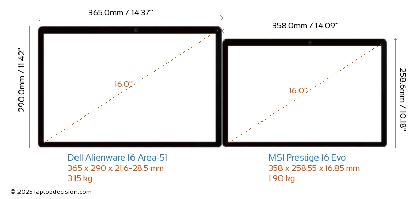 HDMIBoth Alienware 16 Area-51 and Prestige 16 Evo feature an HDMI port. Alienware 16 Area-51 offers 1x HDMI 2.1, while Prestige 16 Evo offers 1x HDMI 2.0.