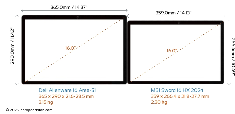 Thunderbolt Alienware 16 Area-51 is equipped with Thunderbolt 5 port. Sword 16 HX 2024 does not have Thunderbolt port.