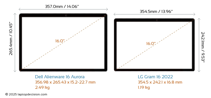 HDMIBoth Alienware 16 Aurora and Gram 16 2022 feature an HDMI port. Alienware 16 Aurora offers 1x HDMI 2.1, while Gram 16 2022 offers 1x HDMI 2.0.