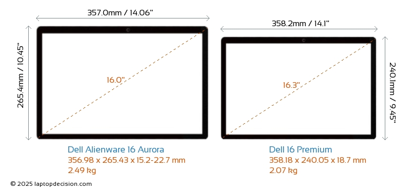 USB Alienware 16 Aurora is equipped with 2x USB 3.2 USB-A ports. 16 Premium does not have USB-A ports.Both Alienware 16 Aurora and 16 Premium have USB Type-C ports. Alienware 16 Aurora has 2x USB 4.0 USB Type-C ports, while 16 Premium has 3x USB 4.0 USB Type-C ports.