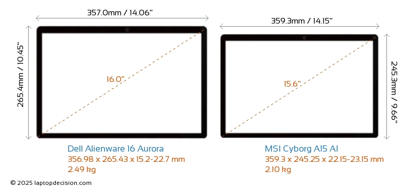 HDMIBoth Alienware 16 Aurora and Cyborg A15 AI feature an HDMI port (1x HDMI 2.1) for connecting to external monitors.