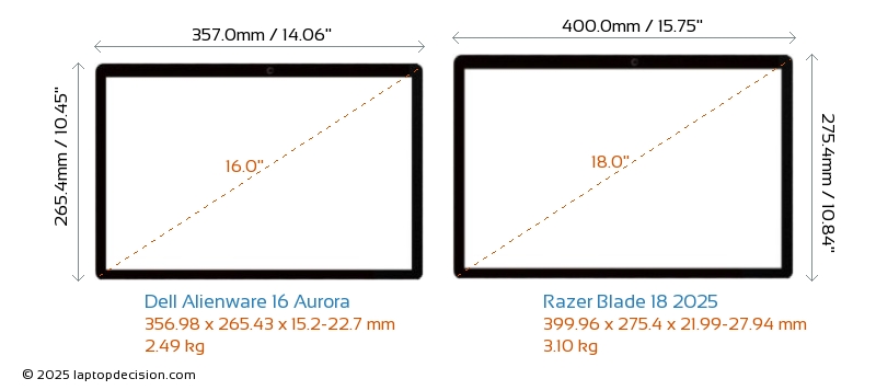 USBBoth Alienware 16 Aurora and Blade 18 2025 have USB-A ports. Alienware 16 Aurora has 2x USB 3.2 USB-A ports, while Blade 18 2025 has 3x USB 3.2 USB-A ports.Both Alienware 16 Aurora and Blade 18 2025 feature 2x USB 4.0 USB Type-C ports.