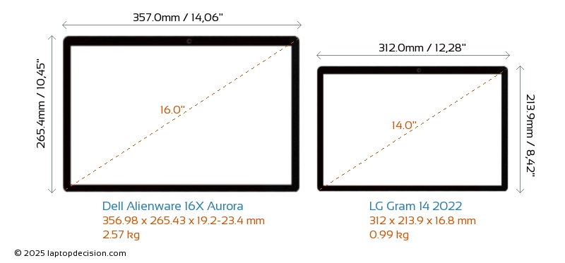 Audio JackBoth Alienware 16X Aurora and Gram 14 2022 are equipped with a 3.5mm Audio Jack, providing seamless connection to headphones and speakers.