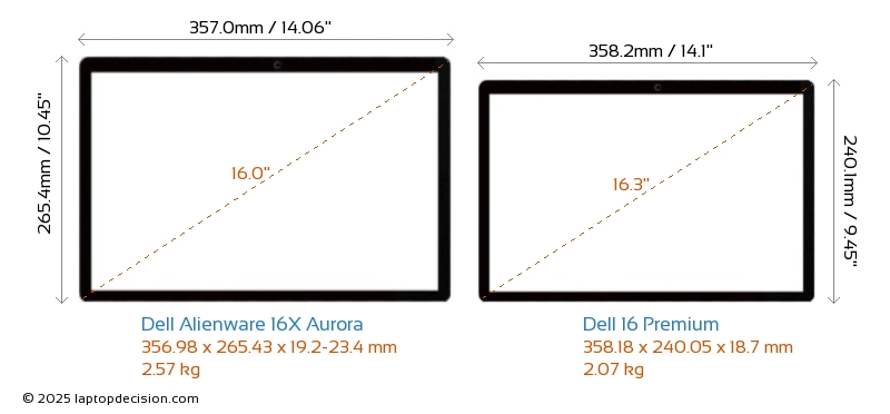 USB Alienware 16X Aurora is equipped with 2x USB 3.2 USB-A ports. 16 Premium does not have USB-A ports.Both Alienware 16X Aurora and 16 Premium have USB Type-C ports. Alienware 16X Aurora has 2x USB 4.0 USB Type-C ports, while 16 Premium has 3x USB 4.0 USB Type-C ports.