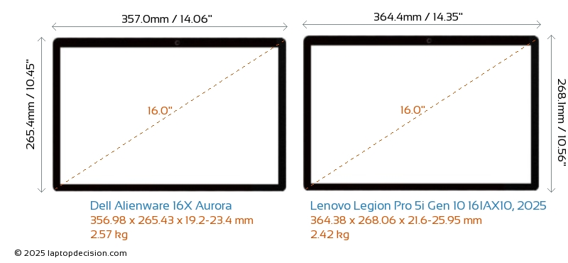 ThunderboltBoth Alienware 16X Aurora and Legion Pro 5i Gen 10 16IAX10, 2025 are equipped with Thunderbolt 4 ports.