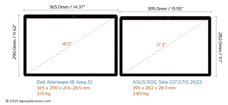 HDMIBoth Alienware 18 Area-51 and ROG Strix G17 G713 2022 feature an HDMI port. Alienware 18 Area-51 offers 1x HDMI 2.1, while ROG Strix G17 G713 2022 offers 1x HDMI 2.0.