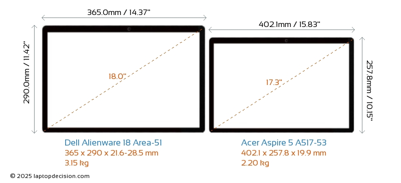 Audio JackBoth Alienware 18 Area-51 and Aspire 5 A517-53 are equipped with a 3.5mm Audio Jack, providing seamless connection to headphones and speakers.