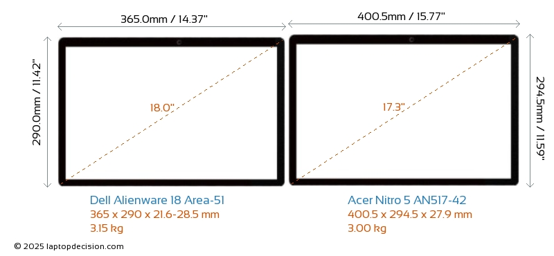 Thunderbolt Alienware 18 Area-51 is equipped with Thunderbolt 5 port. Nitro 5 AN517-42 does not have Thunderbolt port.