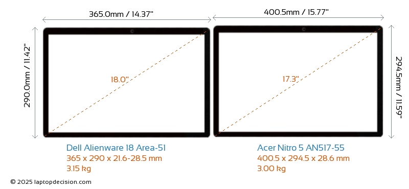 SD Card Reader Alienware 18 Area-51 is equipped with an SD Card Reader for easy access to memory cards. Nitro 5 AN517-55 does not have an SD Card Reader.