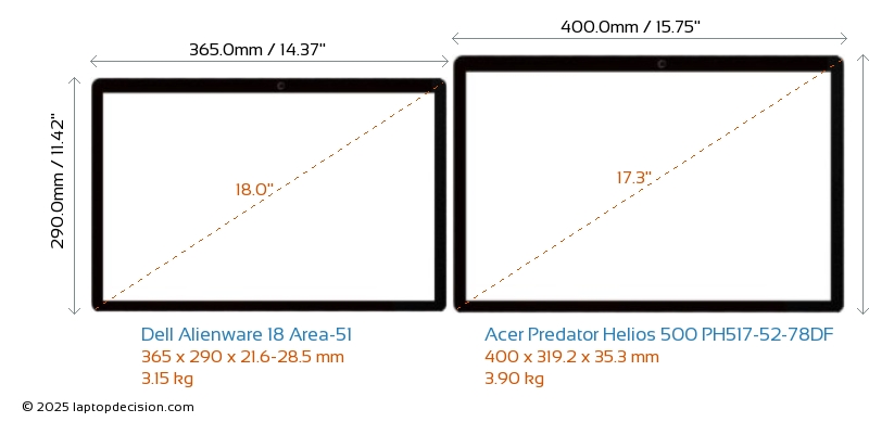 HDMIBoth Alienware 18 Area-51 and Predator Helios 500 PH517-52-78DF feature an HDMI port (1x HDMI 2.1) for connecting to external monitors.