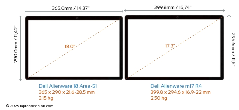 Wifi Alienware 18 Area-51 features a more advanced Wi-Fi standard v7, providing faster and more reliable wireless connections compared to Alienware m17 R4 (v6).