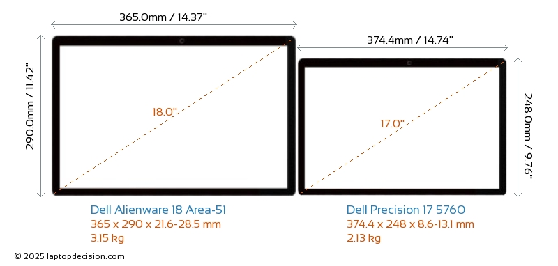 HDMI Alienware 18 Area-51 features an HDMI port (1x HDMI 2.1) for connecting to external monitors. Precision 17 5760 does not have an HDMI port.