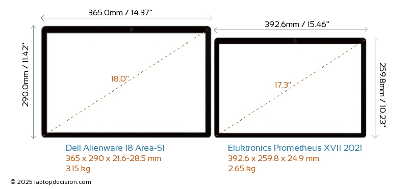 Thunderbolt Alienware 18 Area-51 is equipped with Thunderbolt 5 port. Prometheus XVII 2021 does not have Thunderbolt port.