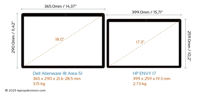 HDMIBoth Alienware 18 Area-51 and ENVY 17 feature an HDMI port. Alienware 18 Area-51 offers 1x HDMI 2.1, while ENVY 17 offers 1x HDMI 2.0.