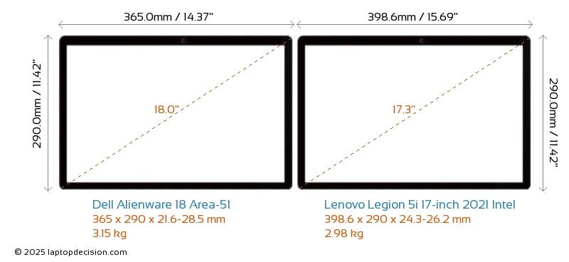 Audio JackBoth Alienware 18 Area-51 and Legion 5i 17-inch 2021 Intel are equipped with a 3.5mm Audio Jack, providing seamless connection to headphones and speakers.
