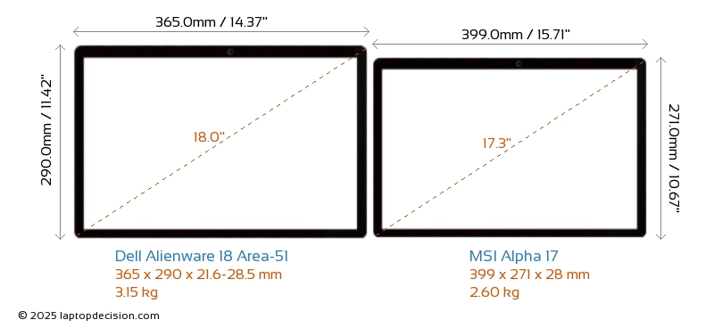 HDMIBoth Alienware 18 Area-51 and Alpha 17 feature an HDMI port. Alienware 18 Area-51 offers 1x HDMI 2.1, while Alpha 17 offers 1x HDMI 2.0.