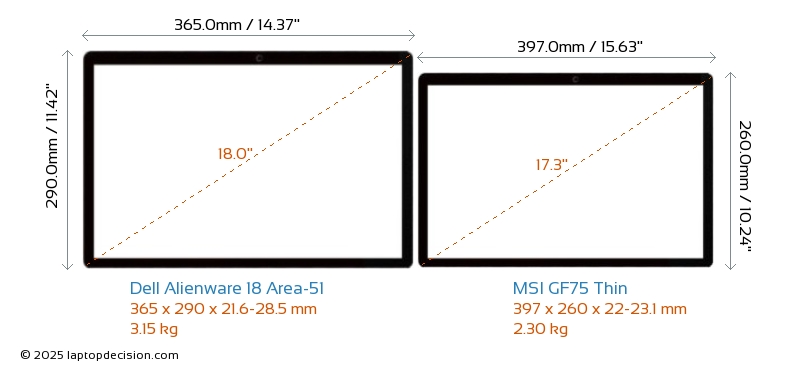 Thunderbolt Alienware 18 Area-51 is equipped with Thunderbolt 5 port. GF75 Thin does not have Thunderbolt port.