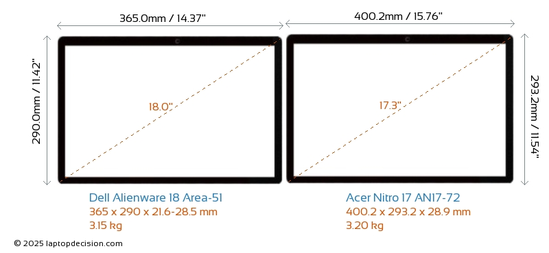 HDMIBoth Alienware 18 Area-51 and Nitro 17 AN17-72 feature an HDMI port (1x HDMI 2.1) for connecting to external monitors.